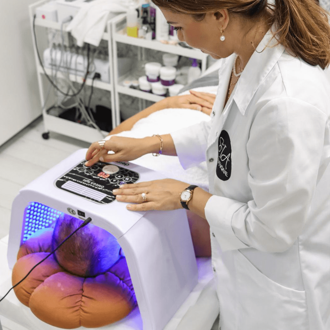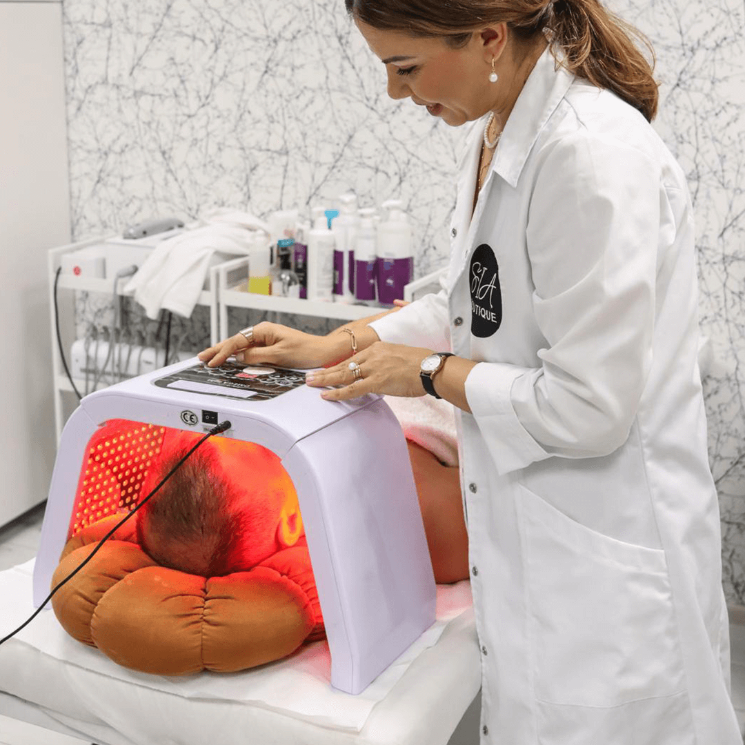 Lumină LED cu rol antiinflamator, antiinfecțios, regenerant, accelerator absorbție substanțe, distruge selectiv celulele anormale (keratoza actinică- lumina albastră), dezinfectant, coagulant, drenant, stimulează creșterea genelor, sprâncenelor și a firului de păr.