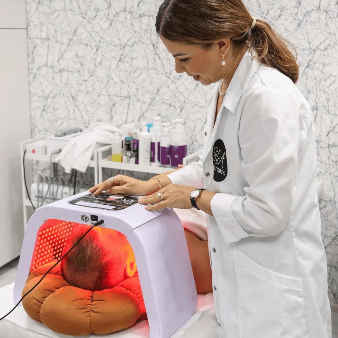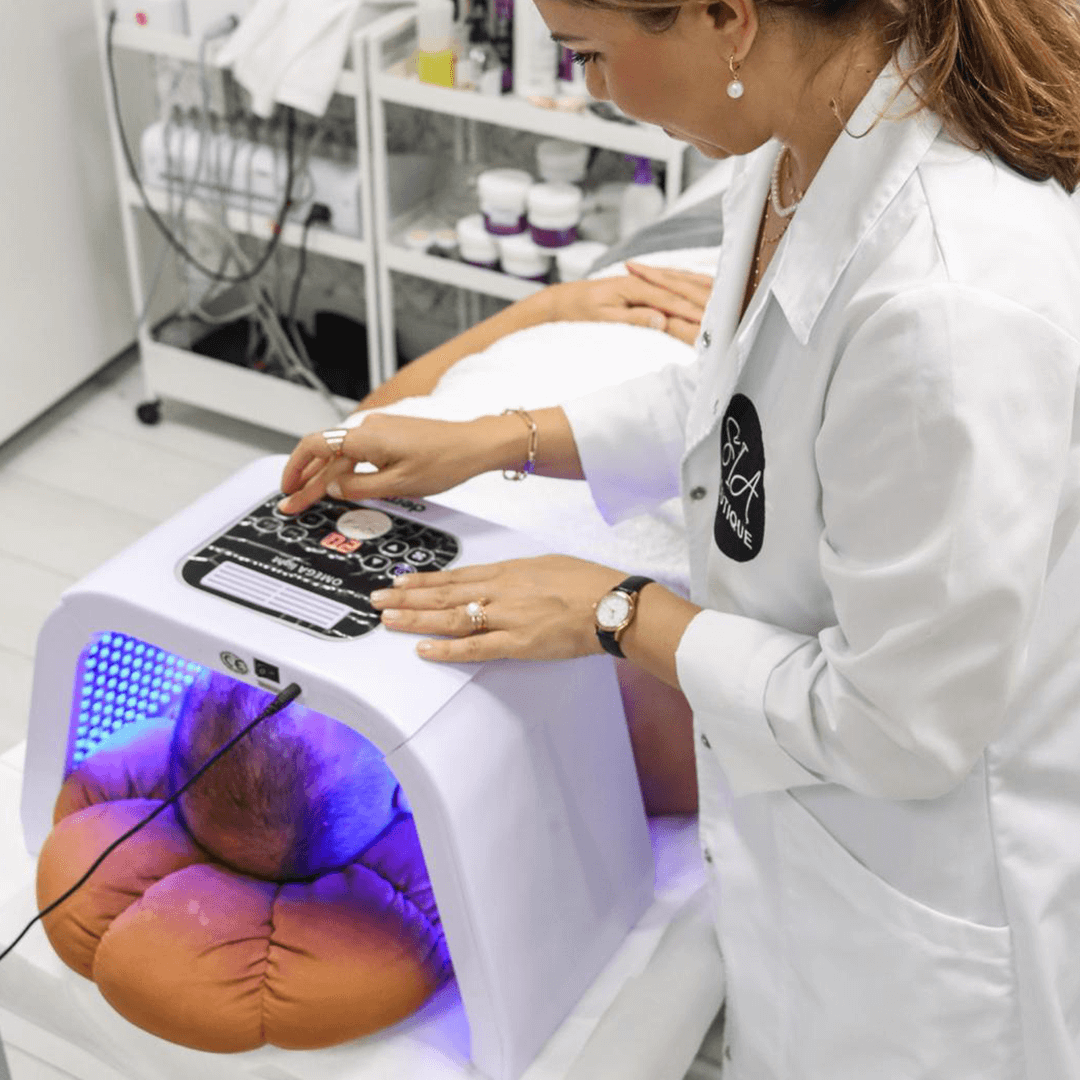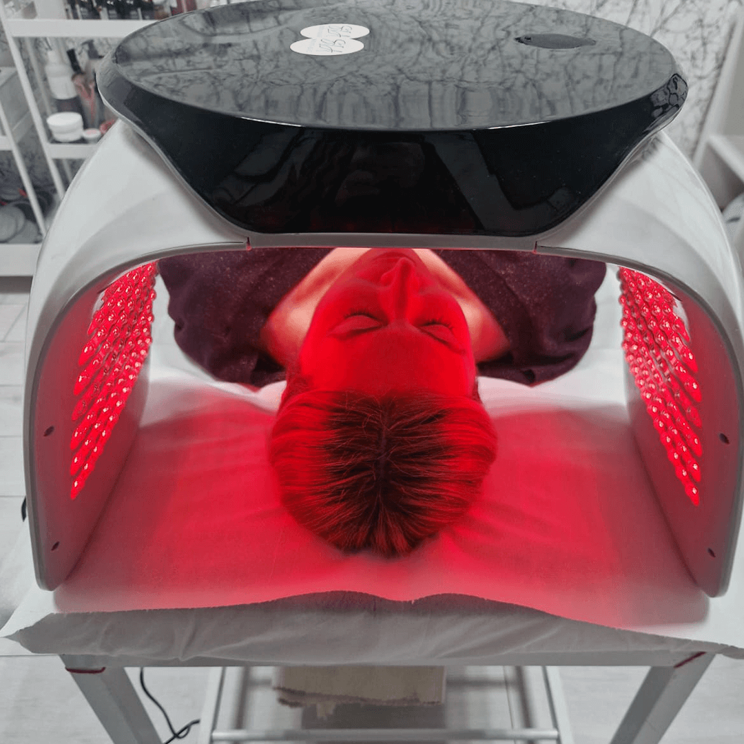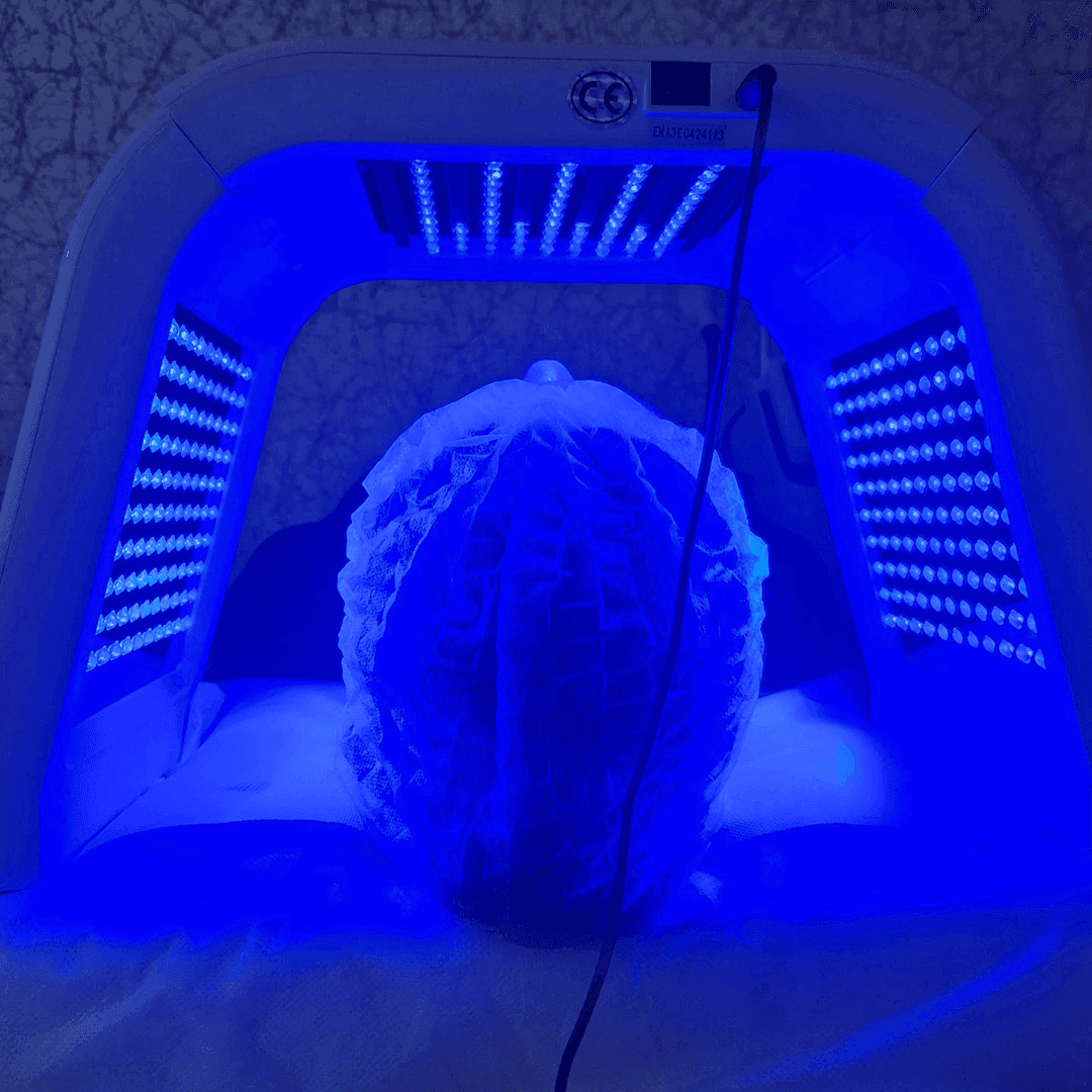 Terapie ce implică expunerea la o lampă fotodinamică ultraperformantă, care emană nanovapori de oxigen hiperbaric sub lumină fotodinamică.